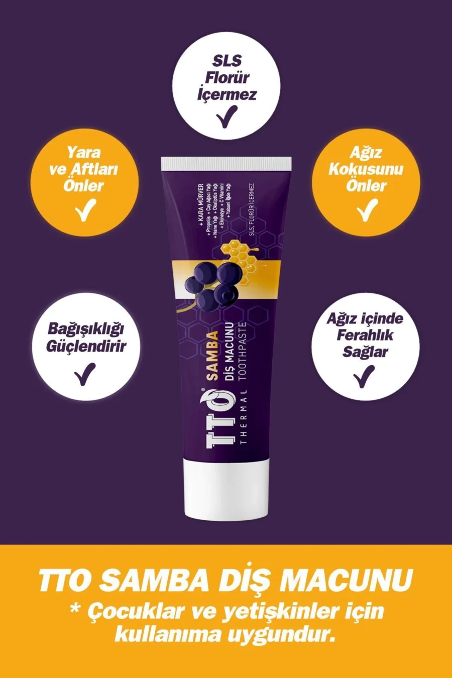 TTO Samba Diş Macunu 75 gr Ağız Kokusu Yarası ( Sls-florür Içermez Sambucus Propolis Çay Ağacı Yağı )